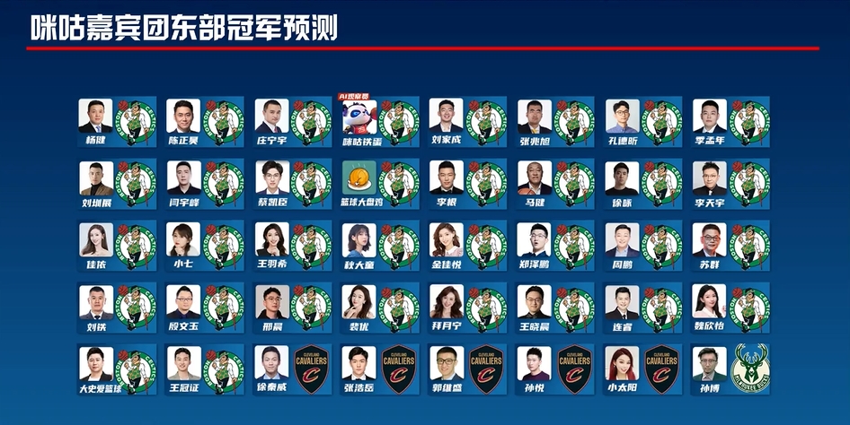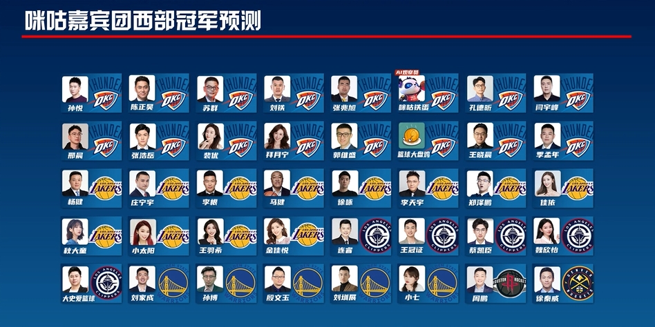 22人支持湖凯都out!咪咕嘉宾团冠军预测仅剩孙悦等8位雷霆支持者
