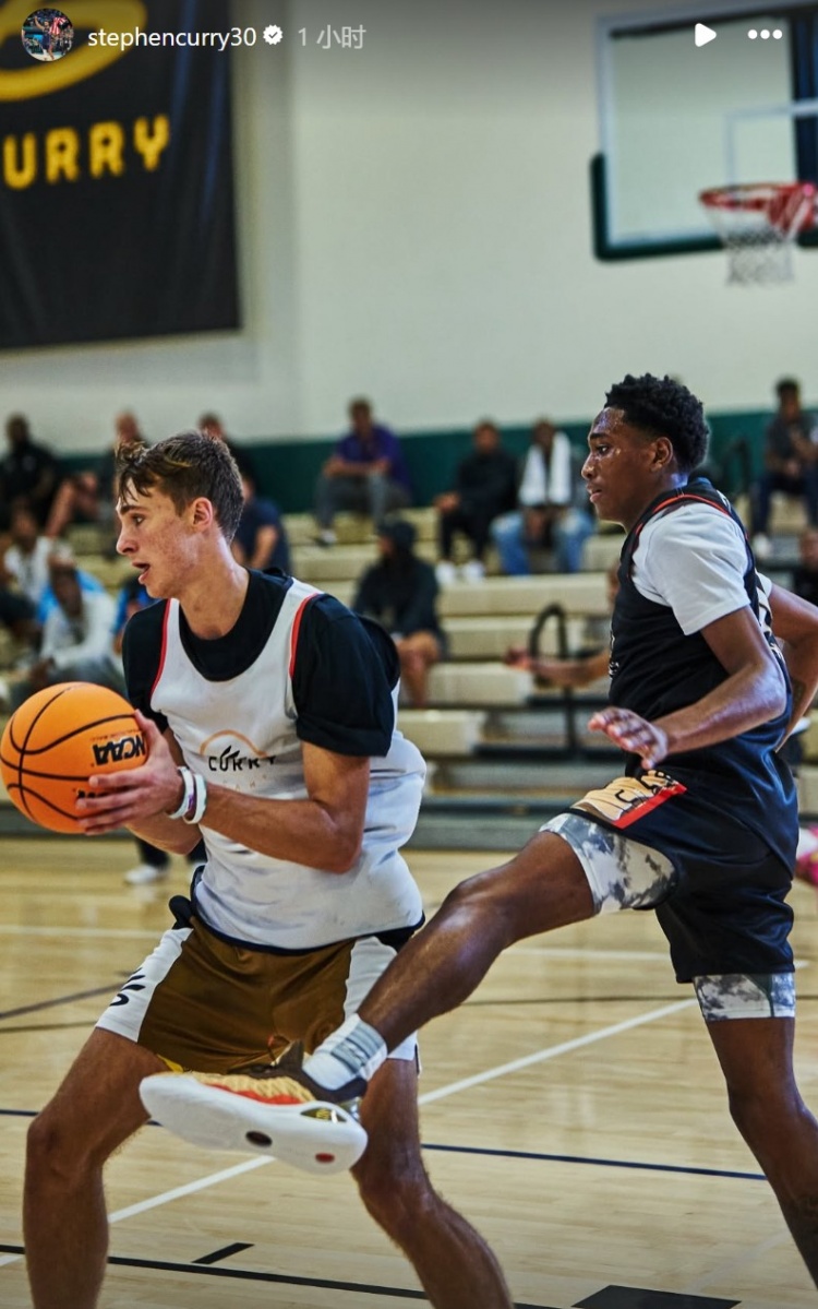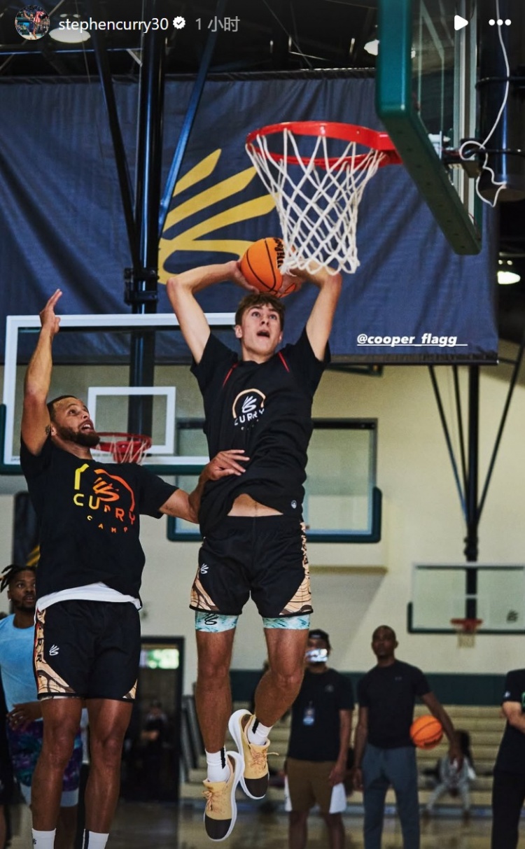 篮球直播6月28日讯 2025年NBA选秀大会,独行侠用状元签选中库珀-弗拉格。 勇士球星库里在INS晒出了自己和弗拉格的合照并写道:“从库里训练营到NBA,冲呀@弗拉格!”