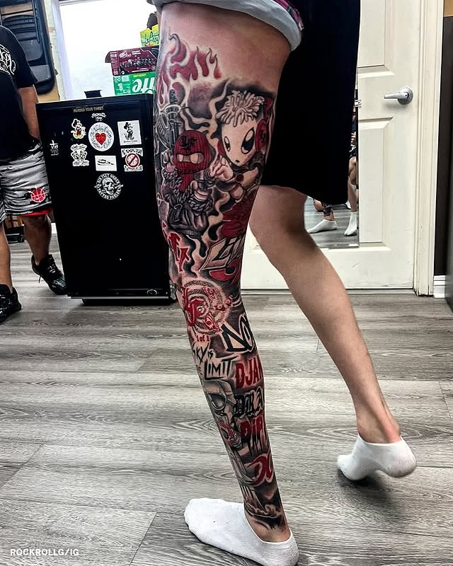 篮球直播7月30日讯 黄蜂球星拉梅洛-鲍尔近期增添了新的文身,覆盖整条左腿。 文身的图案非常华丽,其中还能看到“天空才是极限(Sky is the limit)”的字样