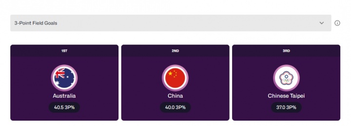 篮球直播08月15日讯 2025年男篮亚洲杯1/4决赛,中国男篮以79-71淘汰韩国男篮,时隔10年重返赛会四强。 同韩国男篮一役,中国男篮的三分球有些失准,全场25投7中,命中率为28%。 截至目前,中国男篮本届亚洲杯比赛三分球命中率是40%,跌至赛会次席(新西兰40.5%居首)。 在小组赛阶段,中国男篮三分球80投35中,命中率高达43.8%,排名赛会榜首。其中年轻球员王俊杰三分命中率高达61.5%。